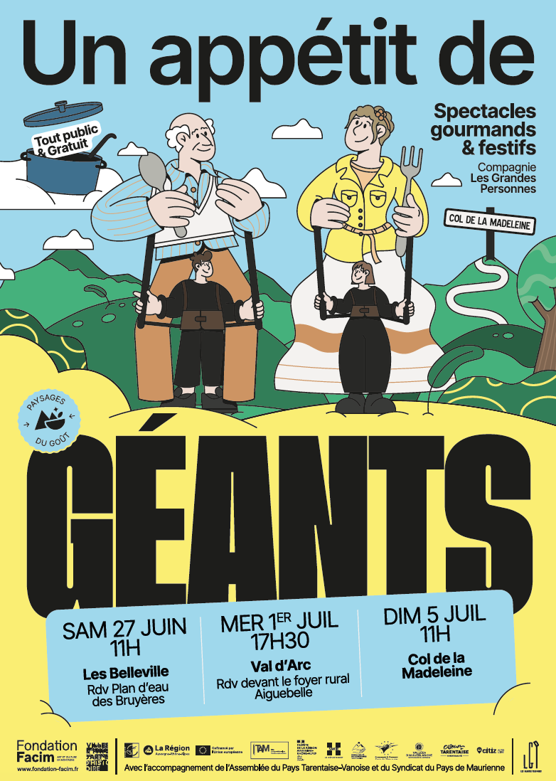 Après une première édition inoubliable en 2025 dans le Massif des Bauges, Un appétit de Géants se déroulera en 2026 sur le territoire de quatre communautés de communes autour du col de la Madeleine, toutes partenaires du projet : Porte de Maurienne, Canton de la Chambre, Vallées d’Aigueblanche et Coeur de Tarentaise.